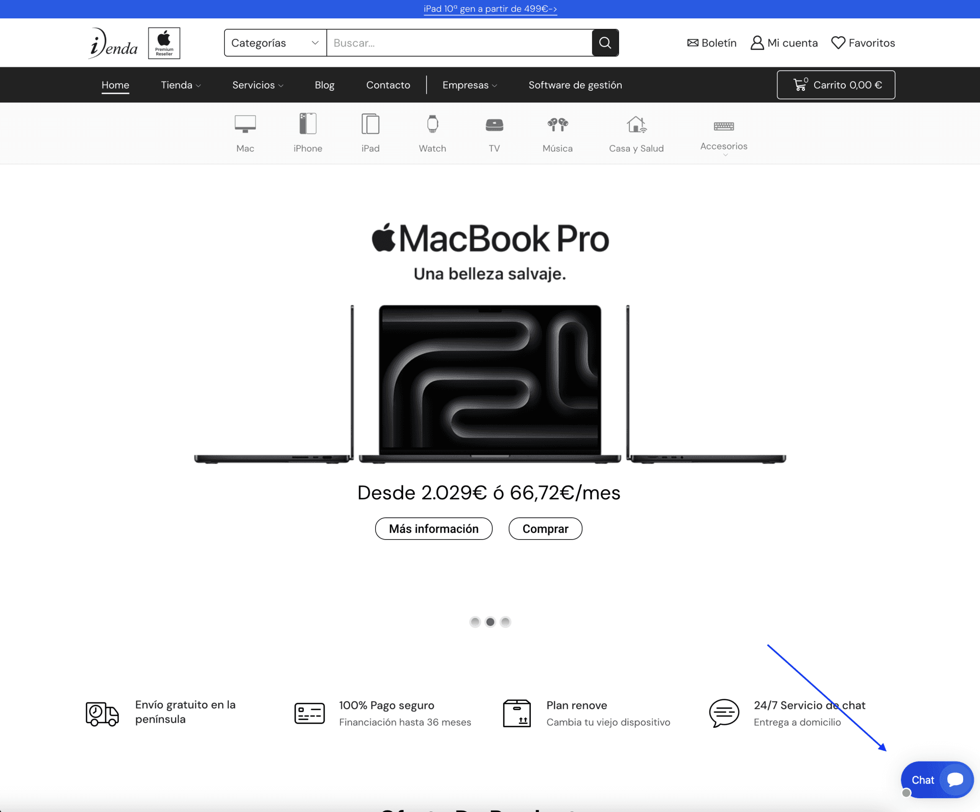 Para chatear con nuestros agentes simplemente pulse en el icono del chat que figura abajo a la derecha en todo nuestro sitio web.